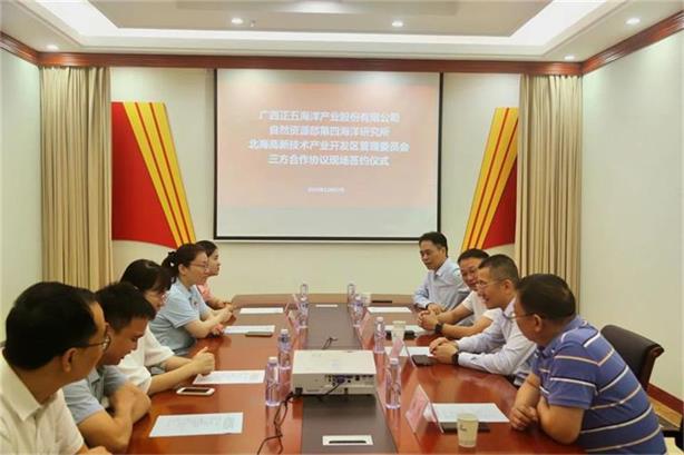 2023年12月12日,在北海高新區的積極推動下,自然資源部第四海洋研究所、北海高新區管委會和廣西正五海洋產業股份有限公司在正五創新港舉行三方合作協議簽訂儀式。